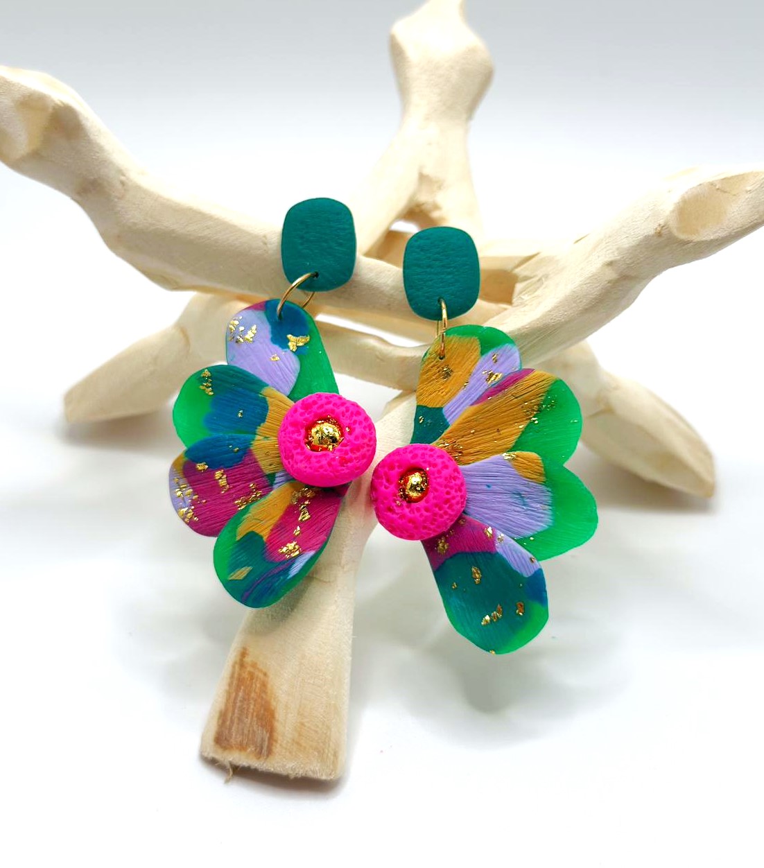 Deixa a tua personalidade florescer com os brincos Bloom | Verde. Com um design inspirado nas formas orgânicas das flores, estes brincos combinam tons vibrantes e detalhes únicos que captam a atenção em cada movimento. Leves e artísticos, são perfeitos para dar um toque de alegria e cor a qualquer look — do casual ao mais elegante.