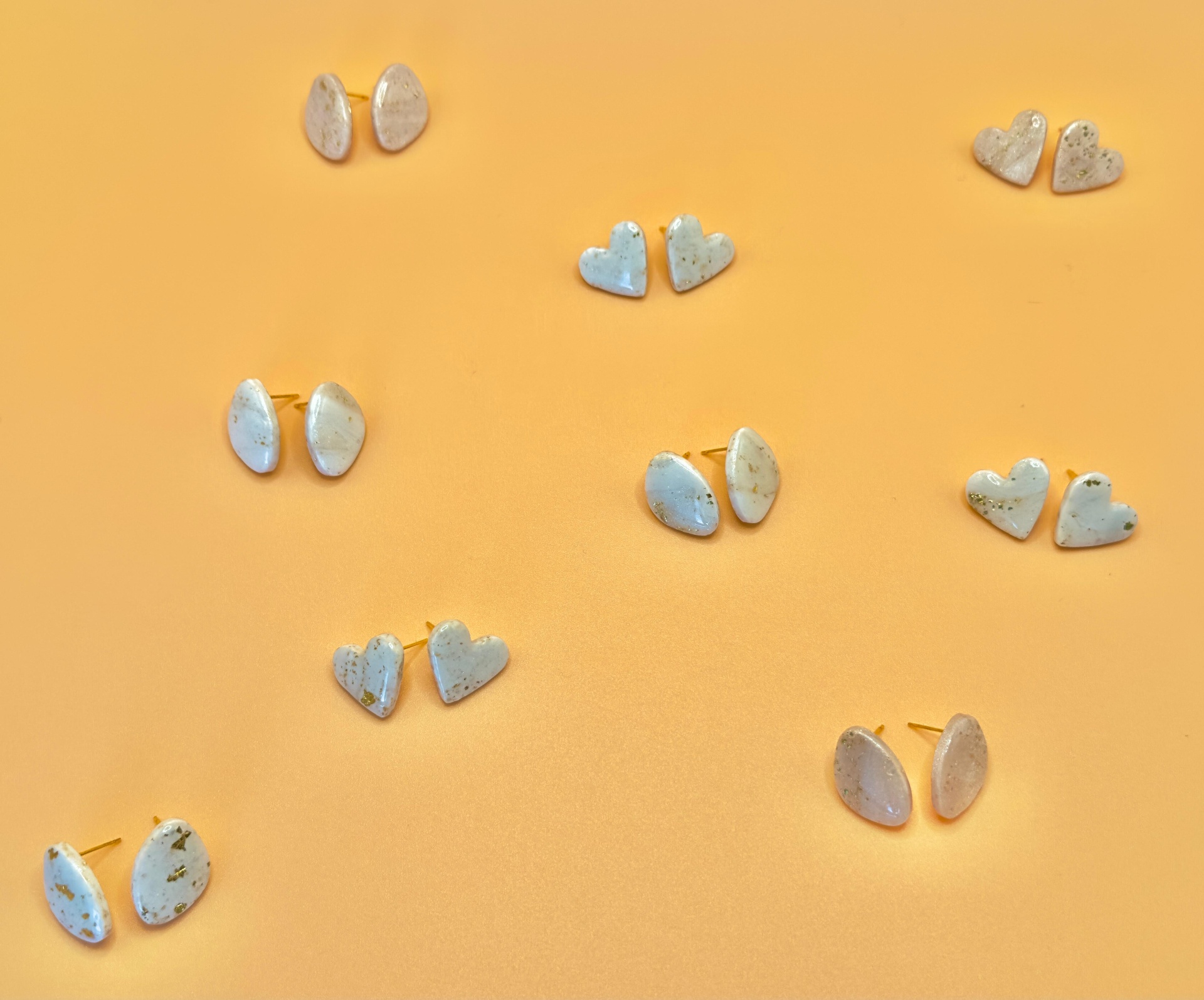Os Flocos de Brisa Dourada são a escolha perfeita para quem adora peças delicadas e intemporais. Com um acabamento suave em tom claro e pequenos apontamentos dourados, estes brincos trazem um brilho subtil e elegante.