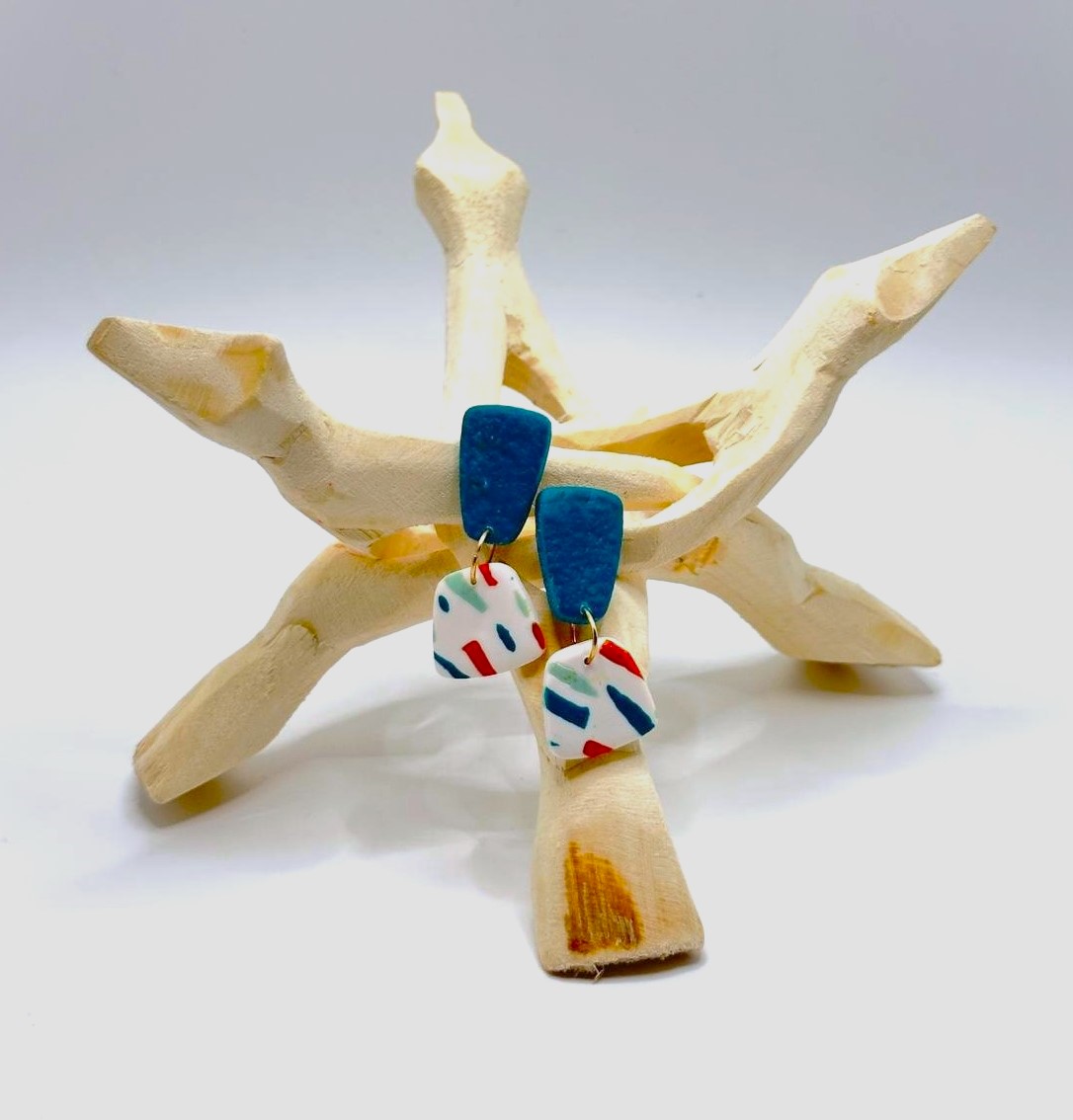 Inspirados na energia do oceano e na luz quente da Ilha Dourada, os brincos Mar da Ilha Dourada combinam um azul profundo com um padrão único em tons contrastantes, criando um efeito moderno e cheio de personalidade.