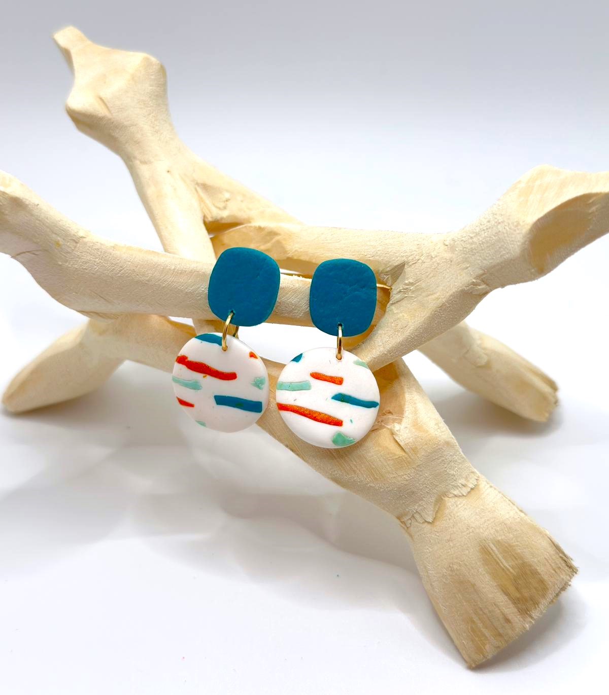 Os brincos Maré Serena combinam a calma do azul profundo com um padrão leve e colorido que lembra o movimento do mar e os reflexos do sol na água. Um design fresco, moderno e cheio de personalidade — perfeito para dar um toque especial a qualquer look.