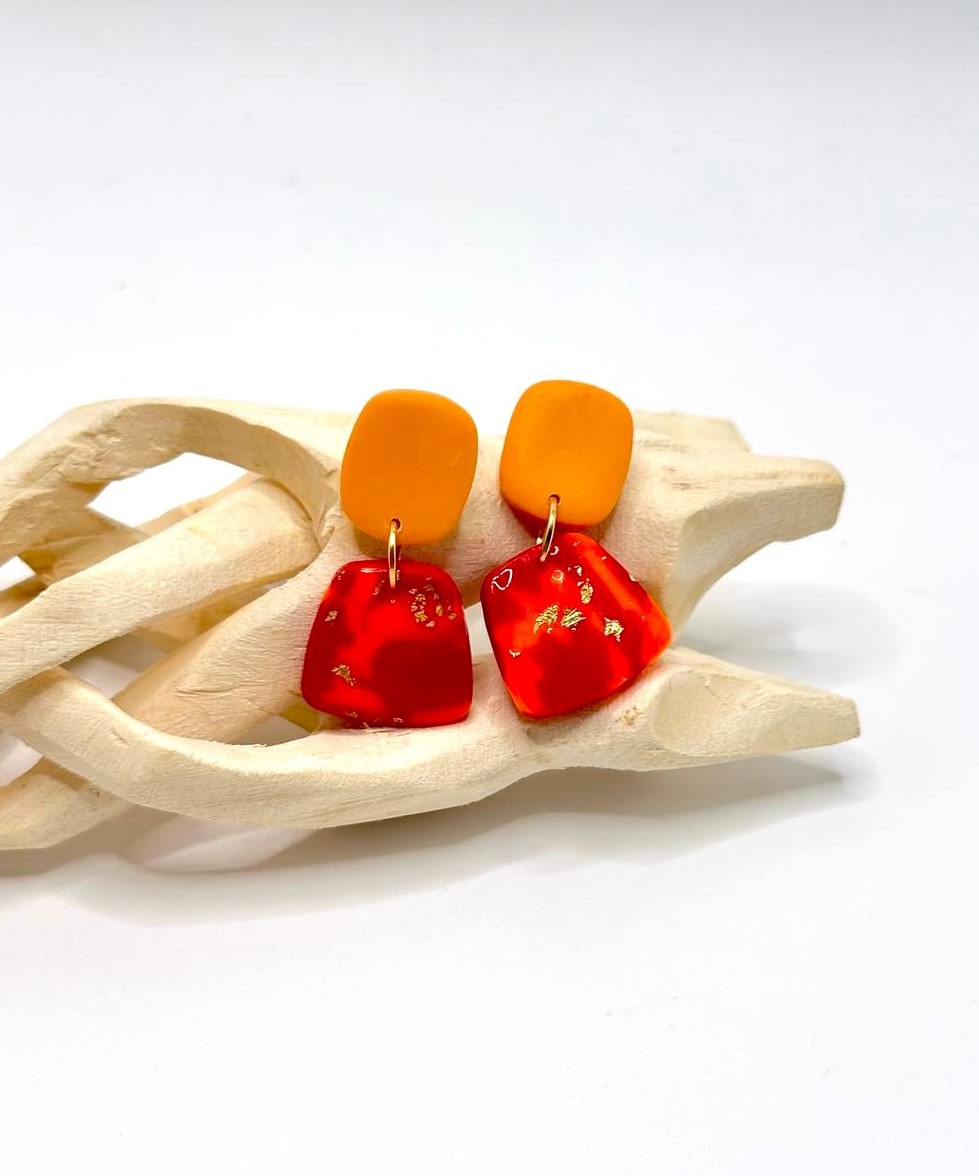 Os Sunset Flame foram feitos para brilhar. Com tons quentes e intensos, combinam um vermelho vibrante com apontamentos dourados que captam a luz a cada movimento. O contraste com o topo em tom laranja cria um efeito poderoso — perfeito para elevar qualquer look com um toque ousado e sofisticado.